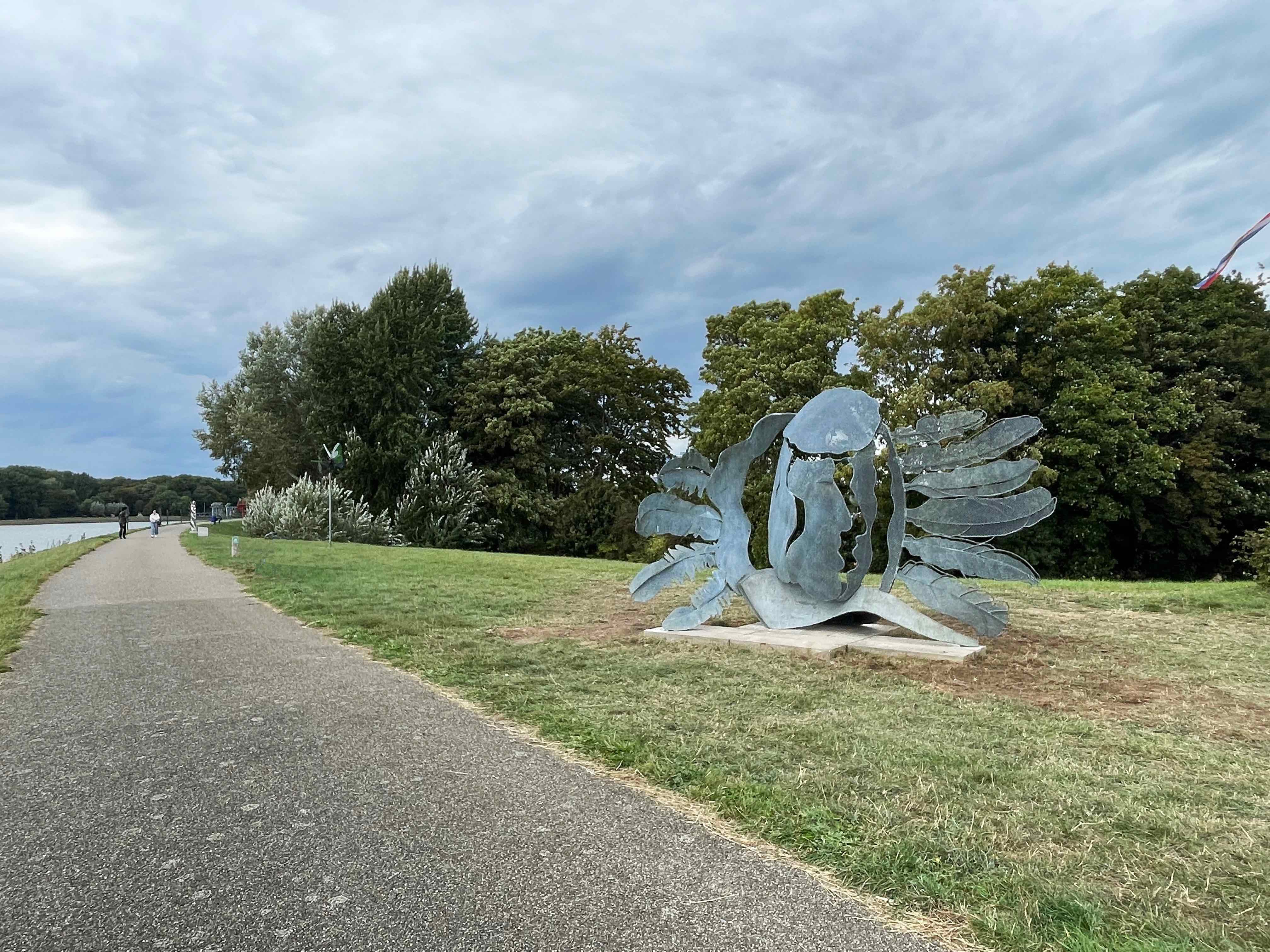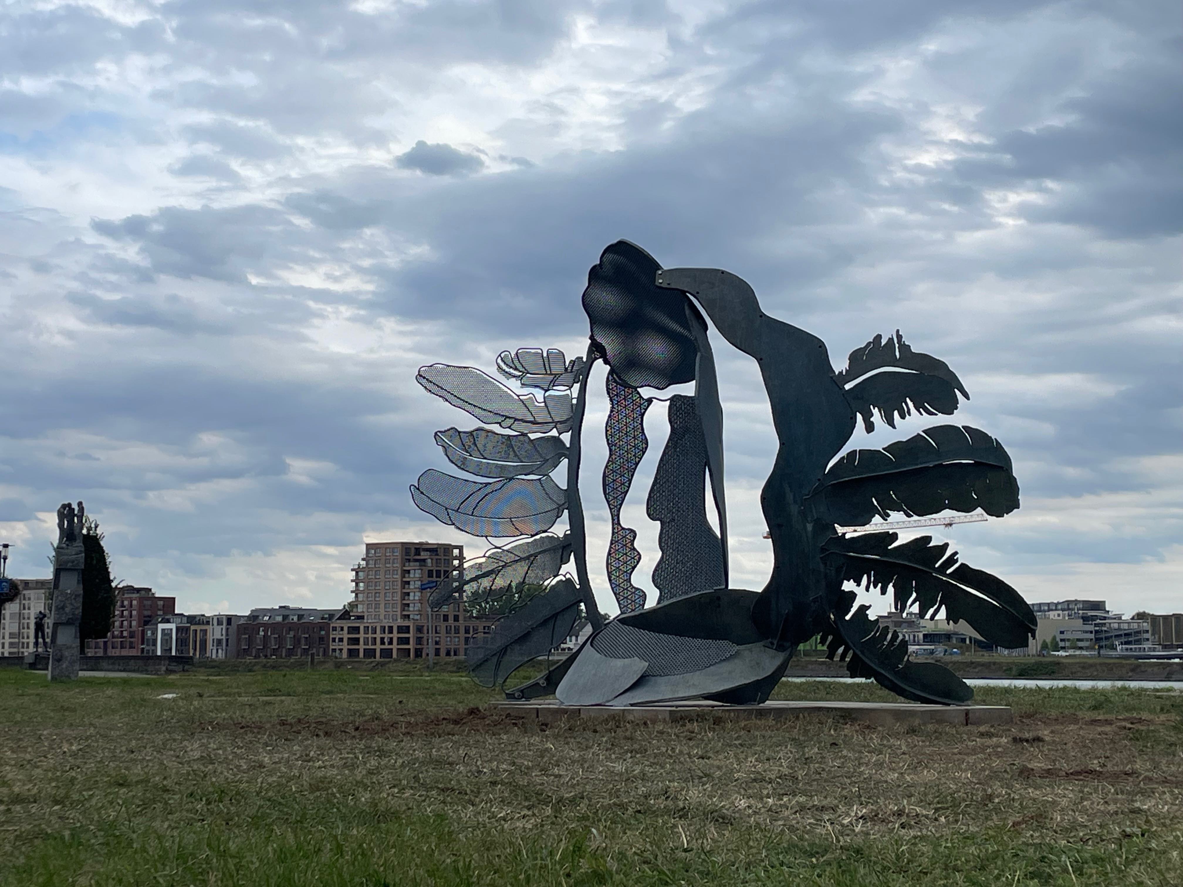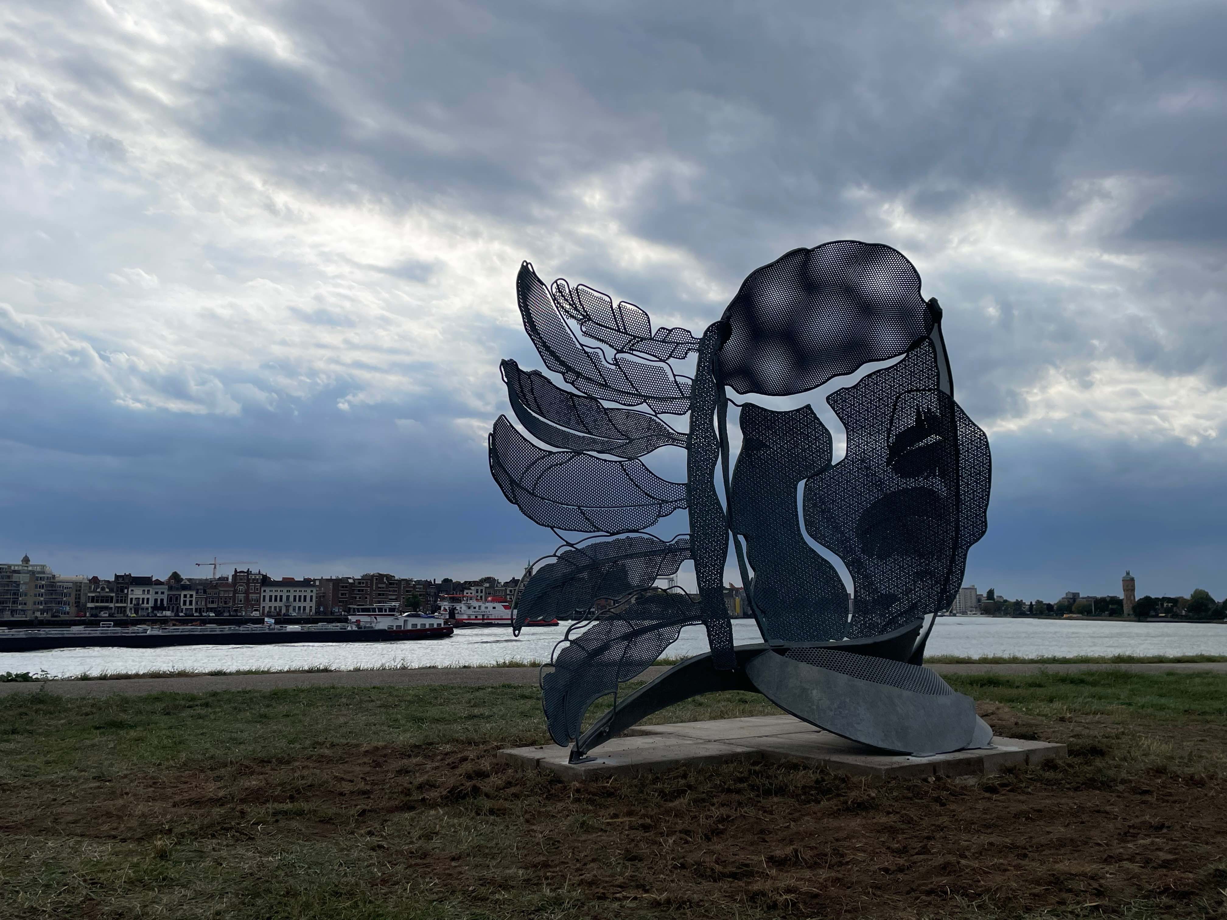 De transparante gaasveren: de noorderwinden. De zwart verbrande veren: de zuiderwinden. Zeewater en Wind zijn voor mij de elementen die het heen- en weer gaan in zich dragen. Een transitie in zichzelf van de oude naar de nieuwe wereld. en andersom. Bezinning, reflectie, overdracht. 2 bewegingen als een circulaire vorm van eeuwigheid.